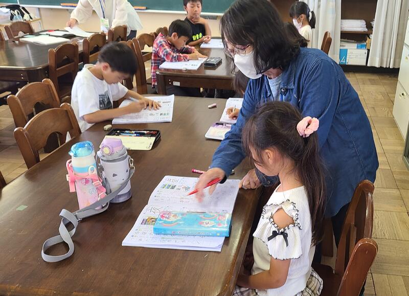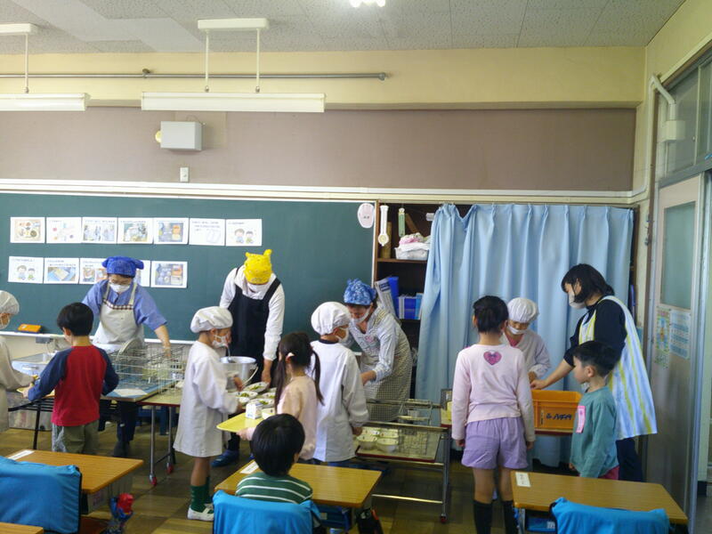 初めてでいろいろ大変ですので、地域のボランティアの方々が6名もお手伝いに来てくださいました(各クラスに3名ずつお手伝いいただきました)。ありがとうございます。