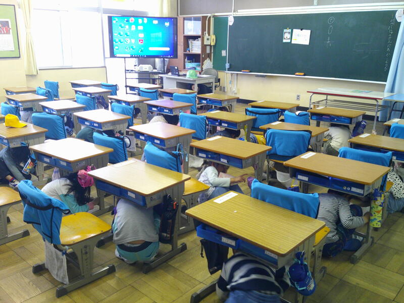 シェイクアウト訓練(まず低く→頭を守り→動かない)を行い、進級で避難経路も変わりましたので、その確認が主となります。