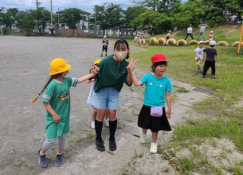 前回「なかよし活動」は顔合わせをしたという記事を書きましたが、この日は「わくわくタイム」の長い時間を使って、第1回の外遊びをしました。