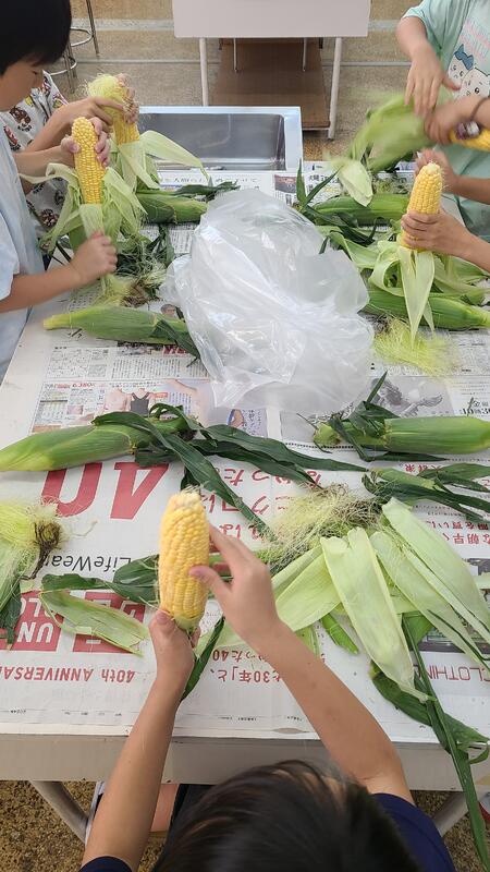 3年生が「とうもろこしの皮むき体験」を行いました。