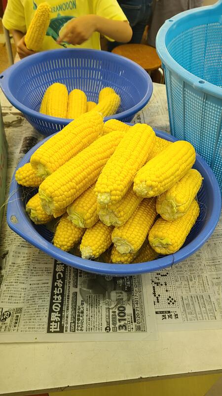 とうもろこしは今日の給食のメニュー「ゆでとうもろこし」に使われます。