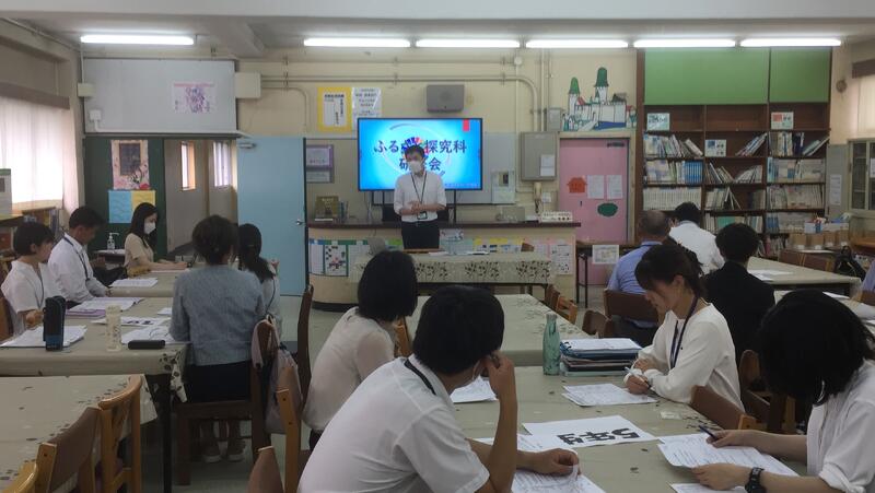 6月6日、市川市教育委員会から講師の先生をお招きし、職員研修を行いました。曽谷小、稲越小合同で、「ふるさと探究科」の学習計画書を持ち寄り、学校間や地域と連携できること等を話し合いました。