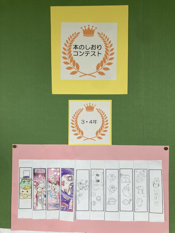 また、ブックス委員が企画した「本のパズル」、「しおりコンテスト」を行いました。この期間は、1人3冊借りることができ、みんな喜んで、本を手にしていました。