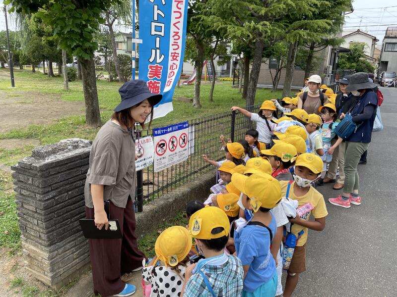 7月5日に、1年生が生活科の学習の一環として、公園探検に行きました。公園までの道のりを歩く中で、様々なものを発見し、また、公園でのルールや遊び方などを学ぶことができました。