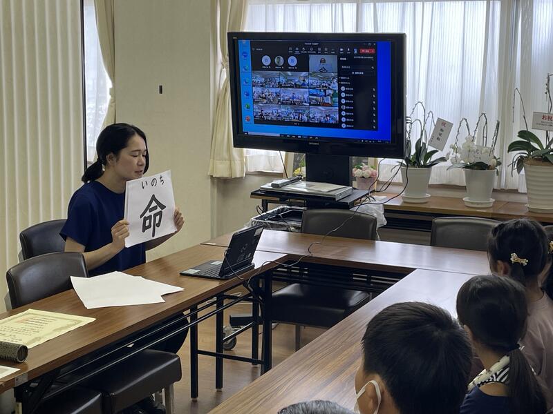 9月1日(金)、応接室と各教室をリモートでつなぎ、出会いの会を行いました。校長先生の話、生活についての話がありました。