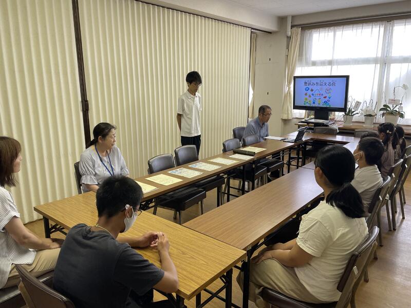 7月20日(木)、応接室と各教室をリモートでつなぎ、夏休みを迎える会を行いました。内容は、校長先生の話、生徒指導の先生の話、表彰などでした。校長先生からは、「安全な」「チャレンジする」夏休みにしてほしいという話があり、生徒指導の先生からも夏休みの過ごし方について話がありました。