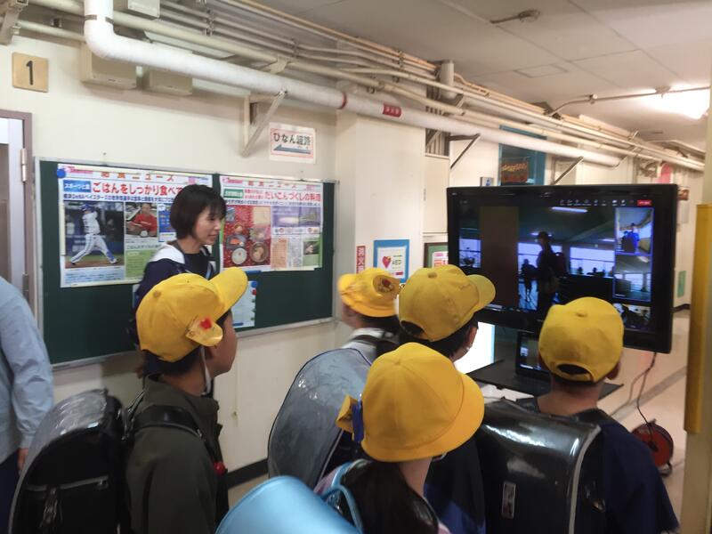 11月28日、体力づくりの一環として、4年生を対象に野球教室(ベースボールチャレンジ)が行われました。講師の方々は、プロ野球球団の千葉ロッテマリーンズの皆さんです。