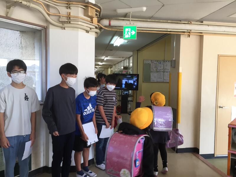 10月17日~10月19日までの3日間、代表委員が中心となって、あいさつ運動を行いました。東国分中学校、稲越小学校とリモートでつないで、大型提示装置を見ながら、お互いに挨拶し合いました。