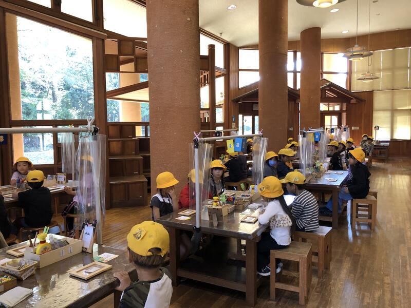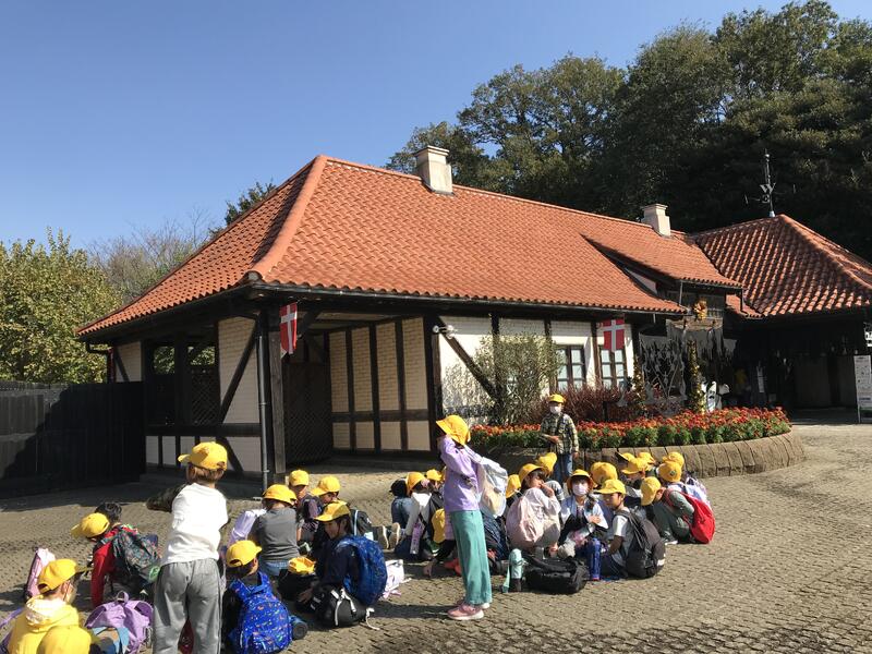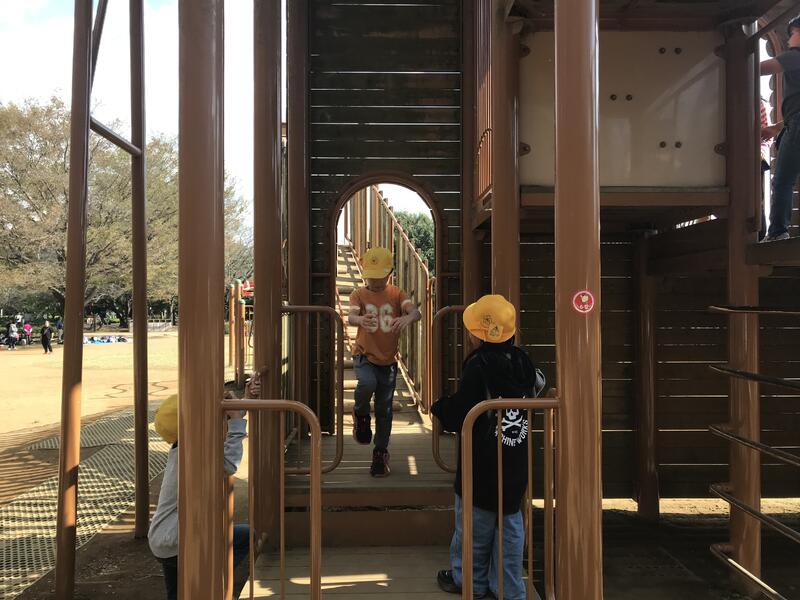 10月27日、気持ちの良い天気の中、1年生が船橋アンデルセン公園に行きました。まず初めに、木のアトリエで写真立て作りを行いました。お昼を食べた後、グループで芝生公園に移動し、ワンパク城、トランポリン、大すべり台、ファミリーアスレチックで元気いっぱい体を動かして遊びました。