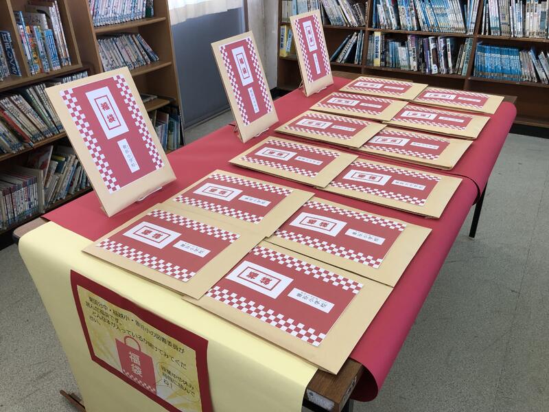 10月23日~27日までの間、「秋の読書旬間」として、ブックス委員を中心に様々な取り組みを実施しました。東国分爽風学園3校合同のイベントとして、「福袋」、「開運おみくじ」、そして、曽谷小独自のイベントとして、「おすすめ本のポップ展」、「図書館薬局」、「謎解き図書館」、「お話給食」などを行いました。
