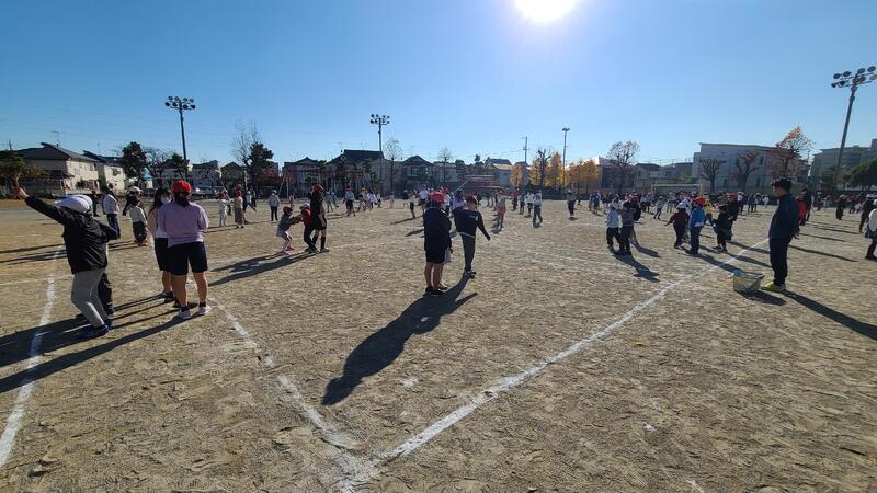 冬晴れの雲一つない快晴で、暖かな陽気の中で、前回に引き続き「なかよしドッジボール大会」( ロング昼休み「わくわくタイム」と1年生から6年生までの縦割りグループ「なかよし活動」を合わせてのドッジボール大会 )の全2回の2回目が開催されました。
