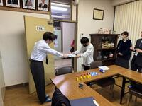 12月4日の放課後、東国分中の生徒会の生徒たちが、曽谷小に来てくれました。来校の理由は、「ブルーリボン運動」に使用する、リボンの作り方を教えてくれるためです。