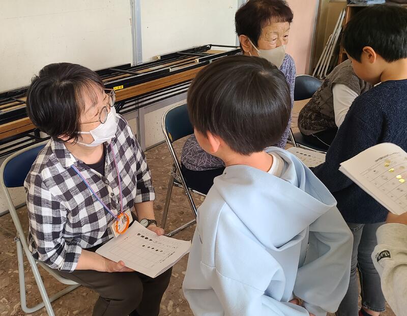地域の皆さんに聞いていただき、暗記できてればシールを貼ってもらいます。