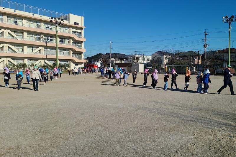 3時間目に今年度第4回の避難訓練が行われました(地震と火事の訓練は2回目で、1回目は4月に行いました。地震と火事のほか、不審者侵入と引き渡し訓練も行っています)。