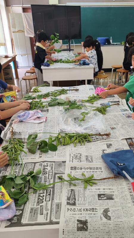 1年生が「枝豆のさや取り体験」を行いました。