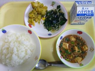 献立:ご飯 牛乳 麻婆豆腐 ナムル みそポテト