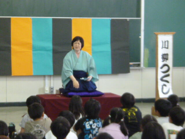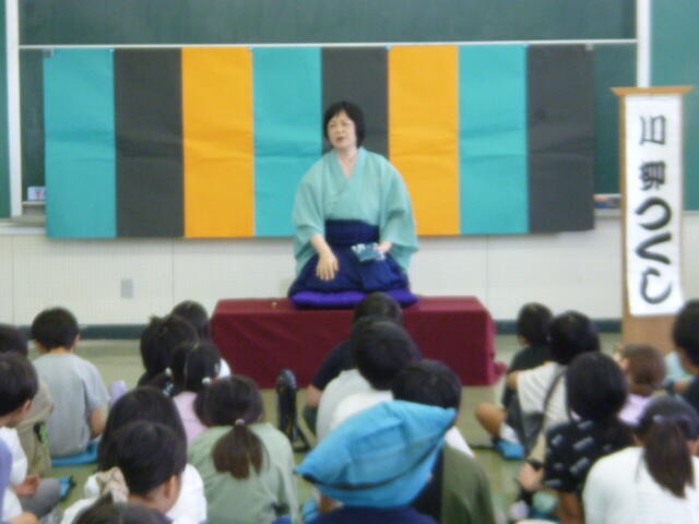 落語は4年生の国語の教科書に出てきます。落語教室で講師をしていただいたのは、川柳つくし師匠です。