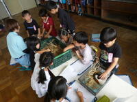 単元は「しらせたいな、いきものの ひみつ」という単元です。これは、子どもたちが生き物と触れ合った経験から伝えたい生き物を決め、作文に書く、というものです。