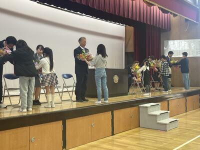 3月17日(金)に本校体育館において厳粛に卒業式が行われました。校長先生からは、「自分に厳しく、人にやさしく、これから出会う人たちを大切にしてください。」という話がありました。