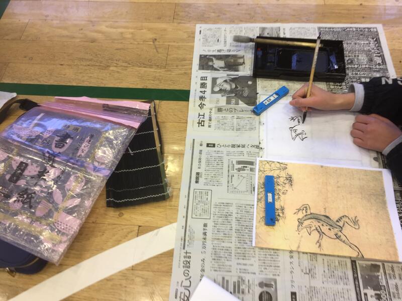 筆を使って、模写に挑戦しました。子どもたちにとって、貴重な体験になりました。
