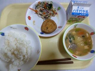 献立:ご飯 牛乳 豚汁 がんもの含め煮 五色和え