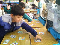 主に1年生では「いろはかるた」、2年生では「いちかわかるた」、3年生以上は「百人一首」にと、学年の実態に合わせる形で取り組んでいます。