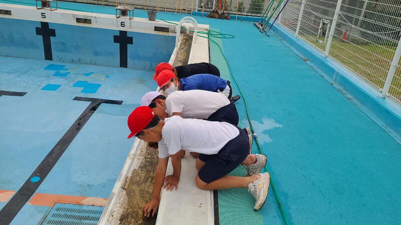 5時間目は児童代表である最高学年の6年生がプール清掃をしました。