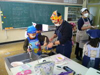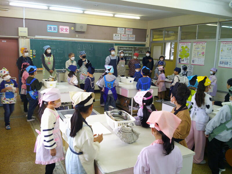 先月、1年生が生活科で育てたさつまいもの調理を行ったことをお伝えしました。これは1年1組の子どもたちでした。残念ながら1年2組は体調不良者が多く、延期になっていましたが、今日やっと実施することができました。