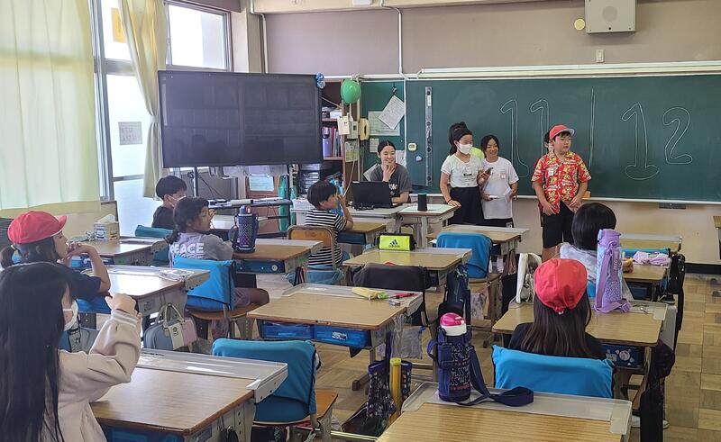 R6.7.9 わくわくタイム × なかよし活動 ② 投稿日時 : 2024/07/09 曽谷小学校管理者 わくわくタイム × なかよし活動の2回目の活動でした。 過去の記事 → 初顔合わせ → 1回目の外遊び 昼になるにつれ、暑さ指数が上がってしまうので、この日は雨ではないのに、屋内での活動でした。 爆弾ゲーム、椅子取りゲーム、なぞなぞ、イントロクイズなどなど、グループによって様々な活動がありました。 この2回目は、5年生がリーダーとなる日でした。5年生は普段の6年生のリーダーぶりを見ていますし、高学年として立派に役目を務めました。 やはり、曽谷小の縦割り活動(なかよし活動)はとてもいいですね!