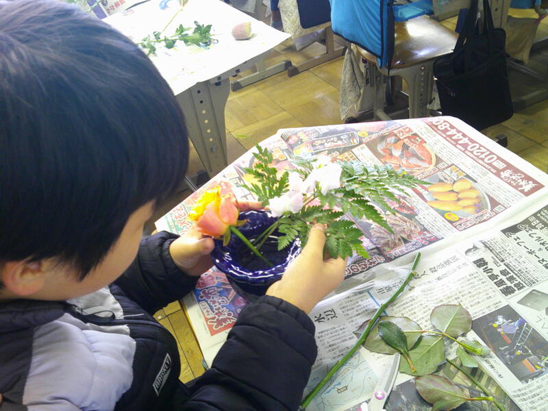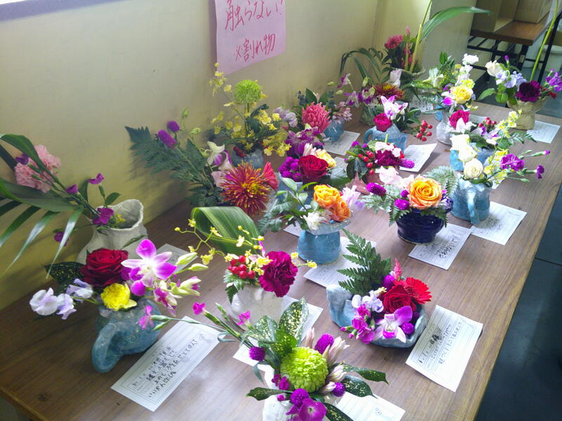 出来上がった作品に満足していたようです。自分の花瓶に自分の感性を生かした生け花。いい体験になりました。