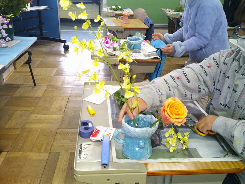 6年生は社会科の歴史で、室町の文化として生け花を学習しましたし、図工では陶芸で花瓶を作りました。