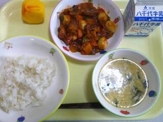 献立:ご飯 牛乳 中華風玉子スープ 酢豚 柿