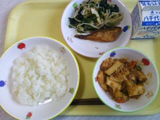 献立:ご飯 牛乳 麻婆豆腐 ナムル みそポテト
