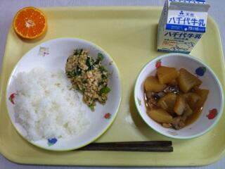 献立:ご飯 牛乳 ぶり大根 スタミナ納豆 花みかん