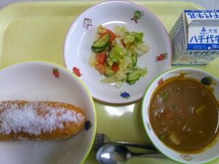献立:シュガーあげパン 牛乳 カレーシチュー フレンチサラダ