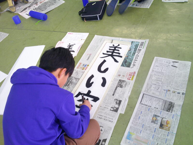この後、冬休みには書初めの宿題が出されますので、ご家庭でもご協力をいただくことになります。