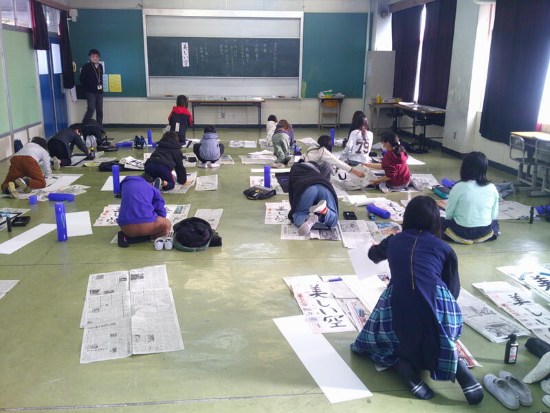年末12/18の、国分高校書道部の生徒さんたちのご指導では、