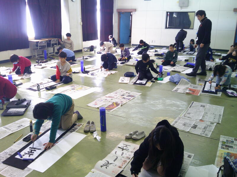 1年生と2年生が書き初めを行いました。冬休みには宿題でご協力いただきありがとうございます。
