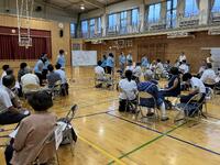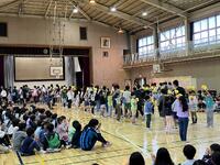 体育館に全校が集まり、1年生を迎える会を実施しました。