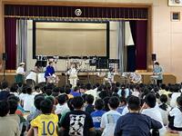 先生からは、絵本ではないのですべて頭の中で姿や様子を想像して聞くようにお話があり、子どもたちはときどき声をあげながら聞き入っていました。