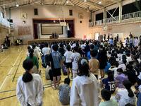 体育館で全校が集まり、いくつかの企画を用意していたのですが、残念ながらインフルエンザの広がりも懸念されるため放送での終業式に変更しました。