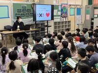 事前に校内に英語で表現した掲示物を掲げたり、朝の会やお昼の放送を英語でしたり、1年生には絵本の読み聞かせを英語でしたりもしてきました。