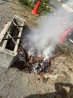 いちょう学級のみんなで校内の畑で収穫したさつまいもを、防災ベンチわきで焼き芋にして味わいました。