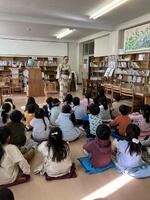 先生からは、絵本ではないのですべて頭の中で姿や様子を想像して聞くようにお話があり、子どもたちはときどき声をあげながら聞き入っていました。