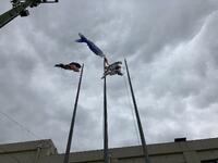 昨年、地域の方からいただいた「こいのぼり」を今年も揚げました。
