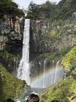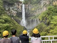 華厳の滝についた時には雨も上がり、虹とともに流れる滝は見事でした!