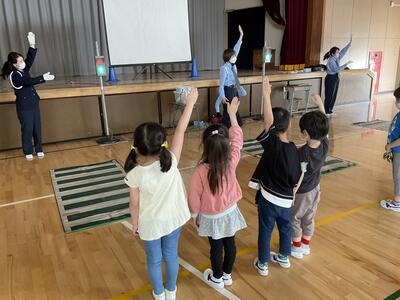 1年生は警察の方に道路の歩き方、横断歩道の渡り方などを教えていただきました。