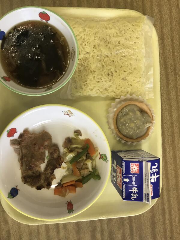 11月25日の給食 投稿日時 : 2022/12/16 菅野小学校管理者 中華めん わかめラーメン(スープ) 豚肉のバーベキュー焼き 野菜炒め お話給食『とびきりおいしいデザート』 ブルーベリーフールタルト