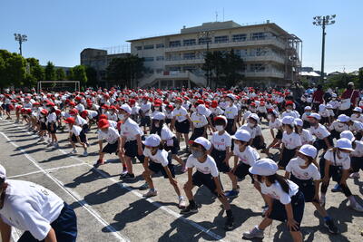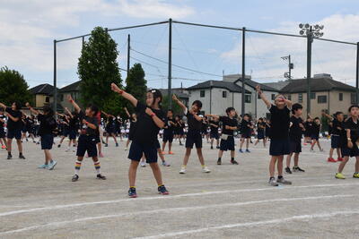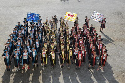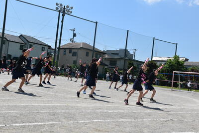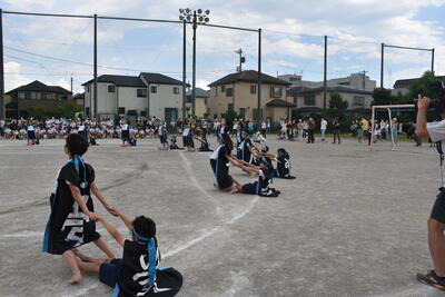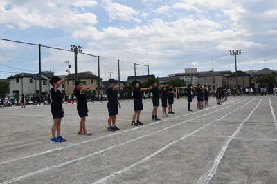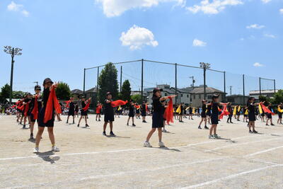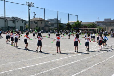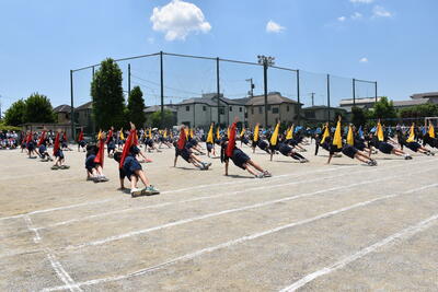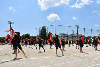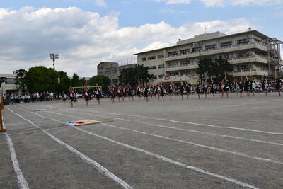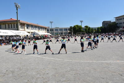 気持ちのよい晴天の中、全校で開会式と応援合戦を行いました。