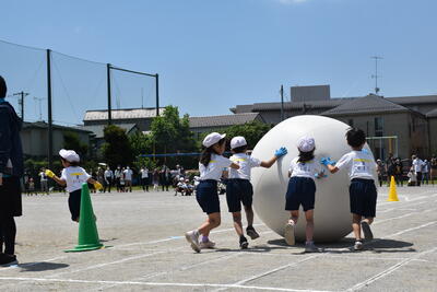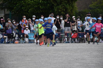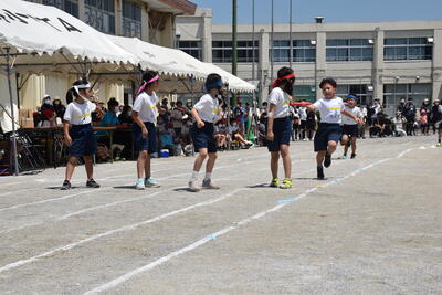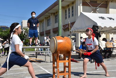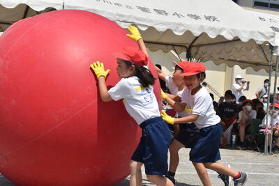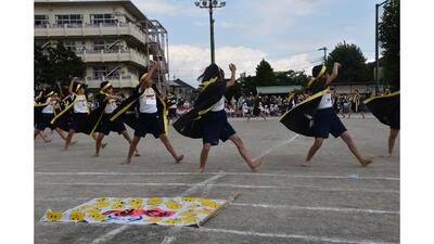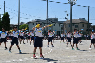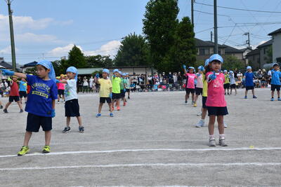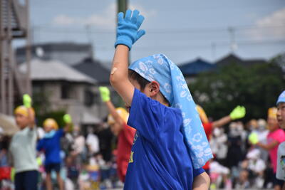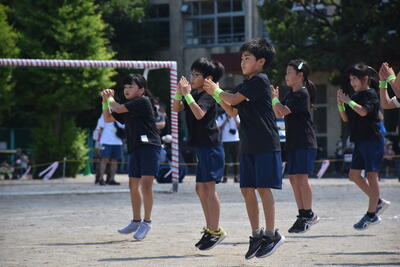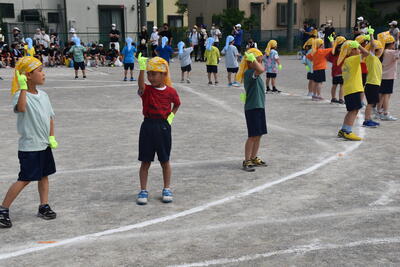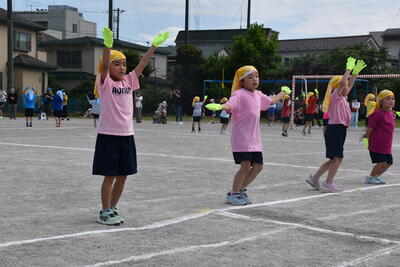 1年生は速いリズムに合わせ一生懸命踊りました。「かわいい!」と声援が飛んでいました。